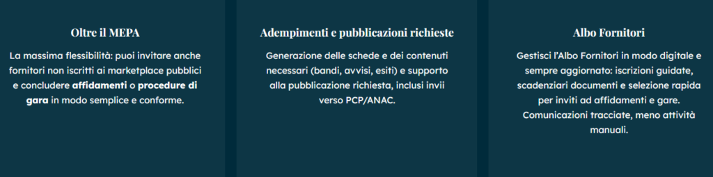 Crea procedura → Ottieni CIG → Aggiudica/pubblica quanto richiesto